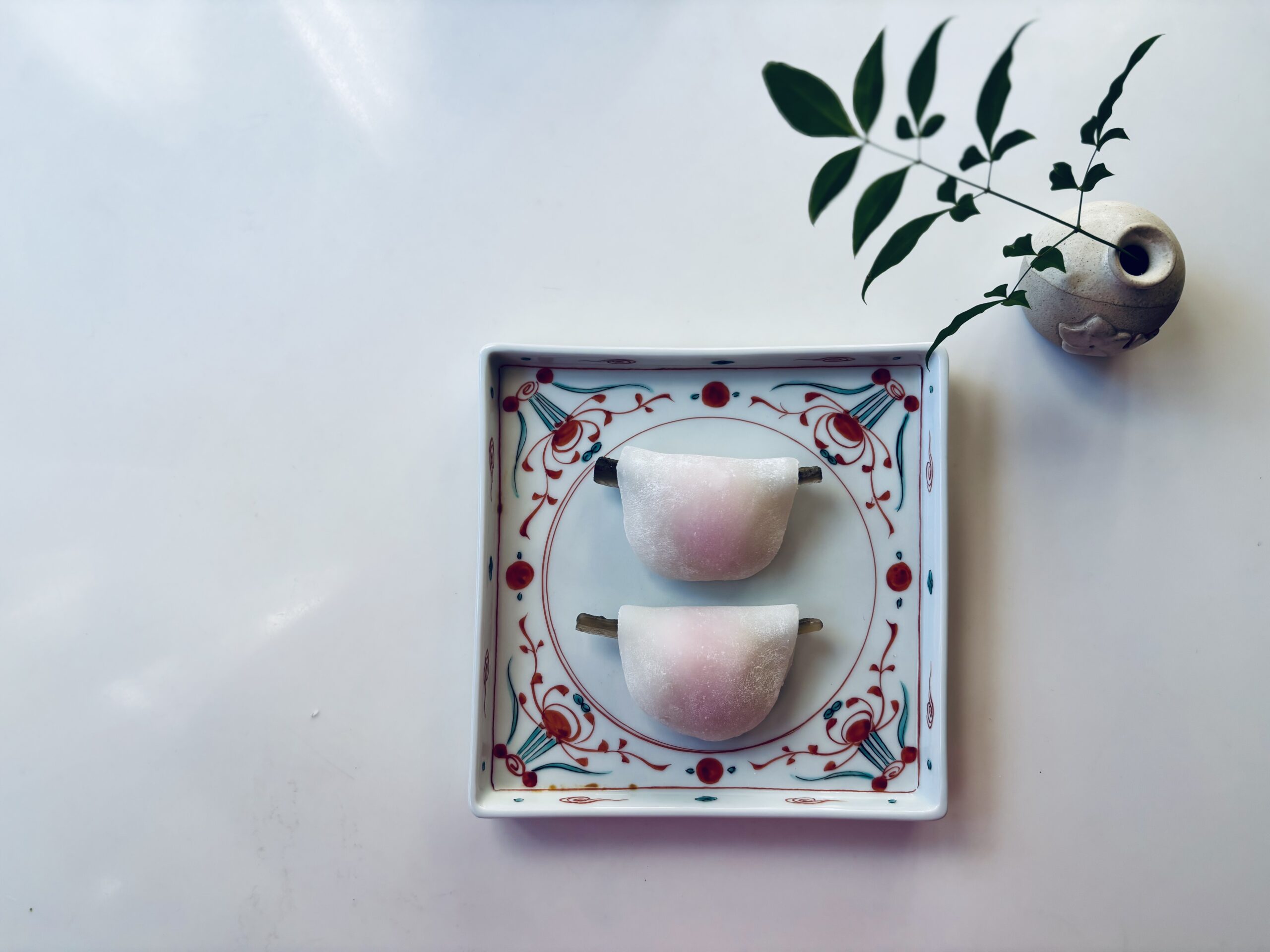 Hanabira Mochi for New Year's day or Hatsugama Tea Ceremony お正月、初釜の花びら餅