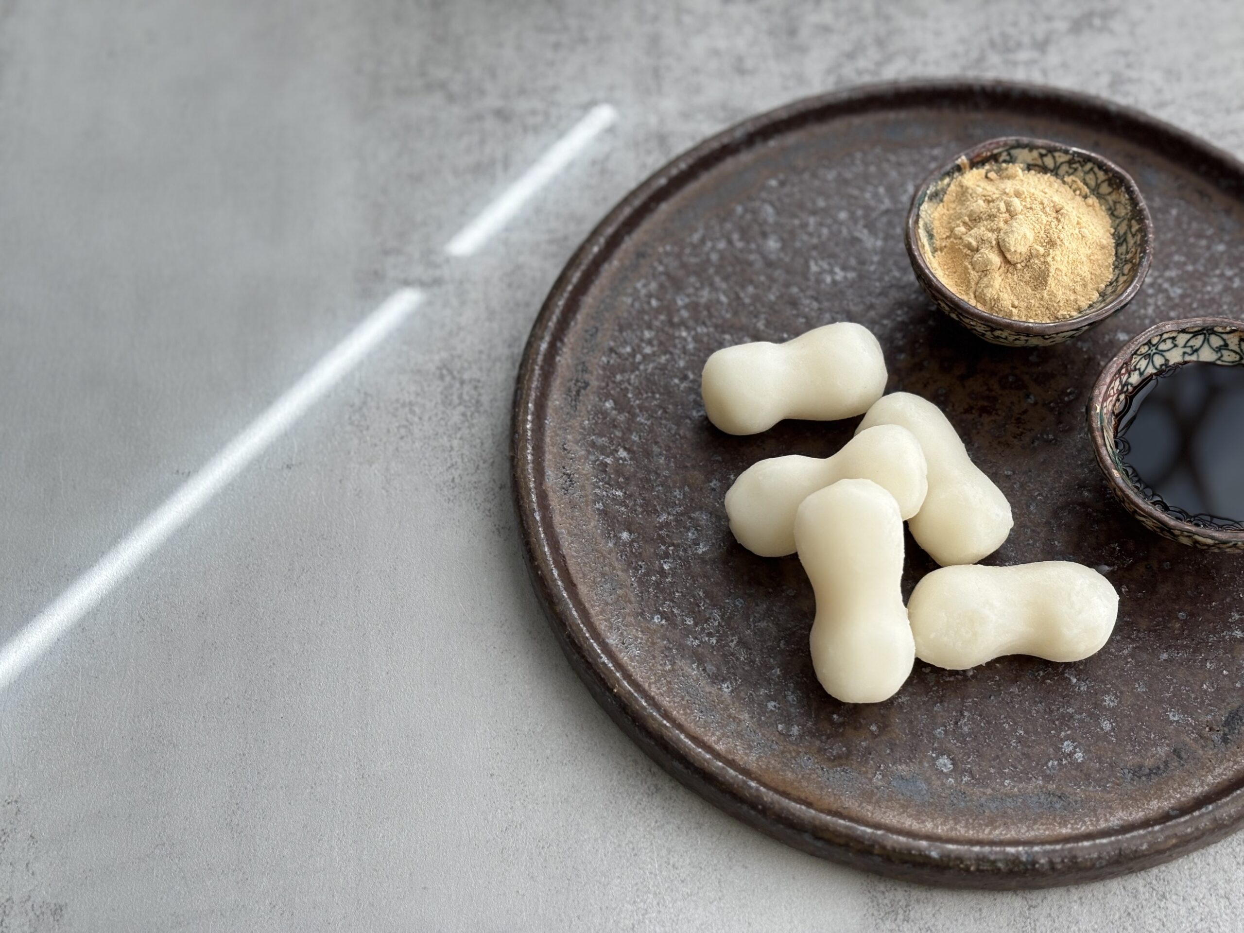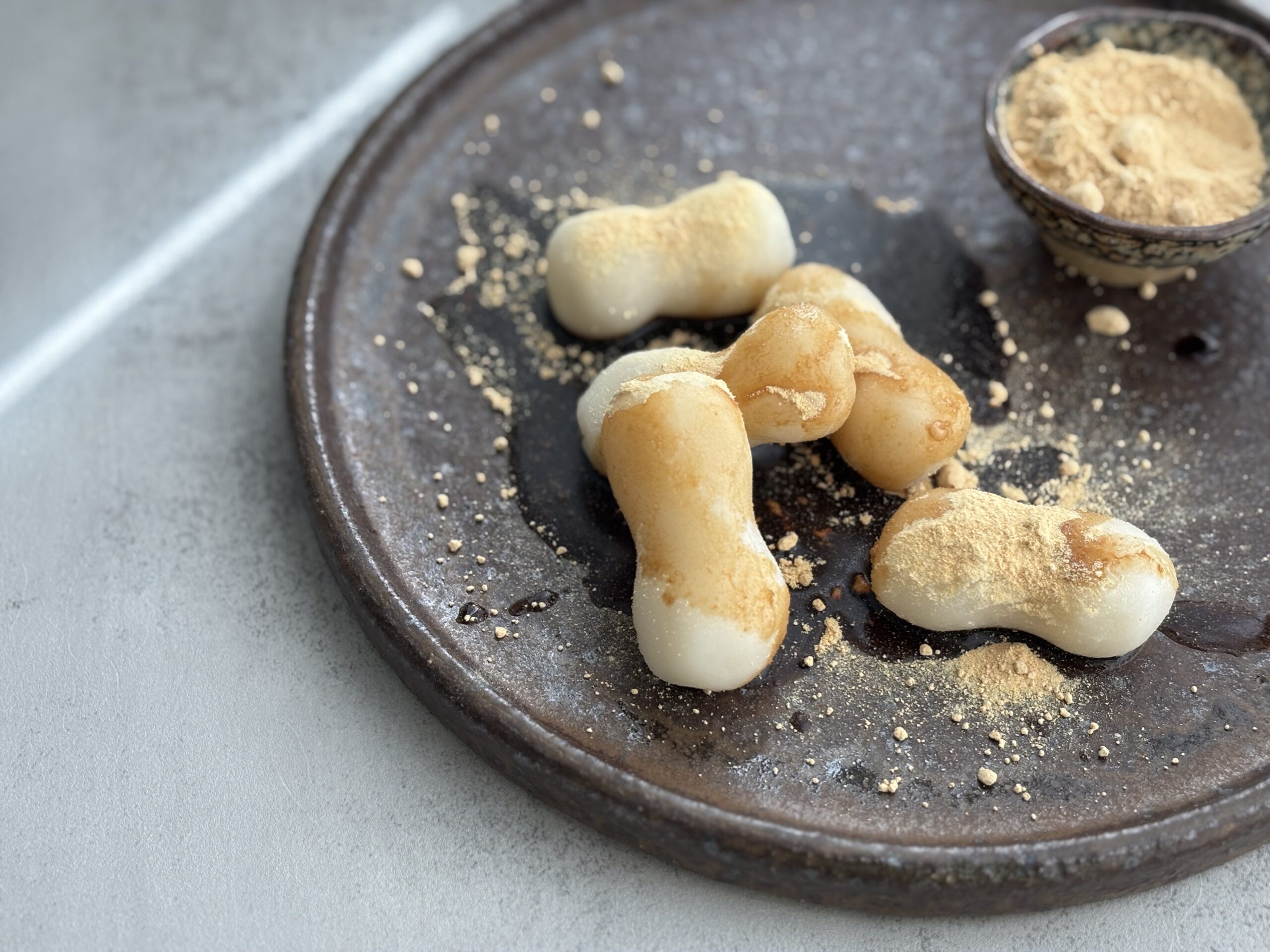 Enjoyed with kinako (roasted soybean flour) and kuromitsu (brown sugar syrup), they convey the seasonal ritual and a quiet sense of blessing in every bite.